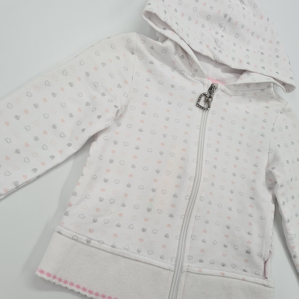 Bluza dziewczęca zapinana na zamek, z kapturem, rękawy oraz dół bluzy wykończone ściągaczem, z przodu po bokach dwie kieszenie