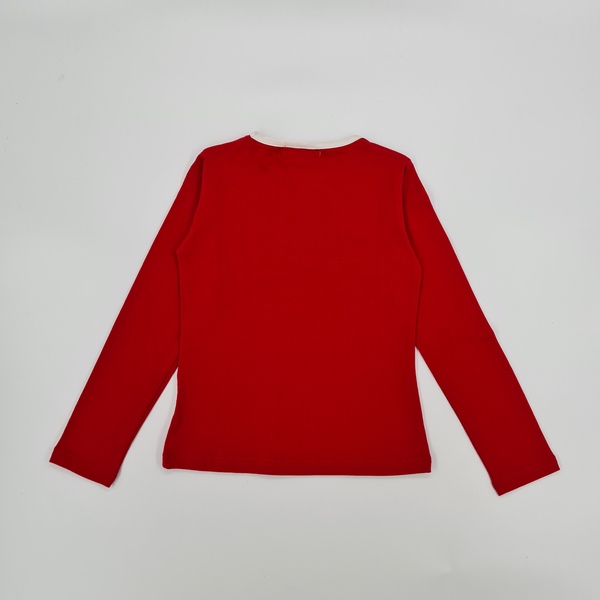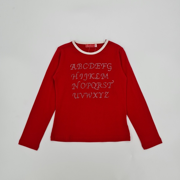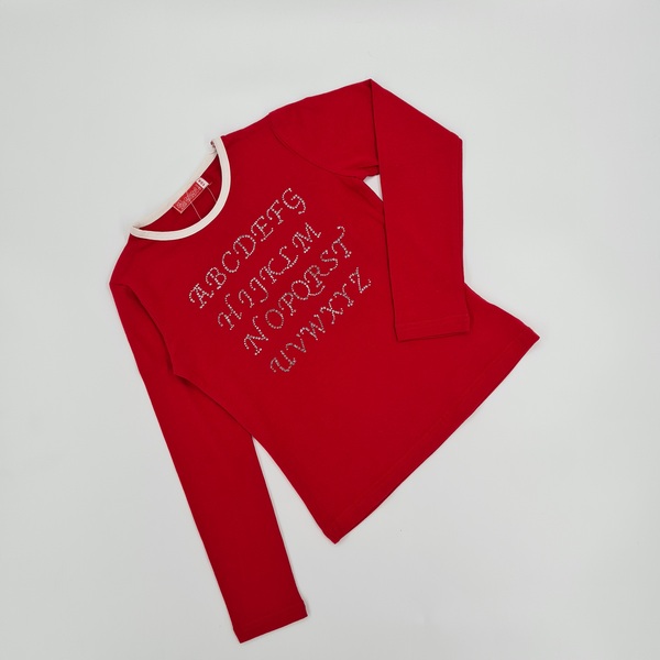 Koszulka dziewczęca,czerwony kolor, okrągły dekolt, długi rękaw,aplikacja-naklejone symilki