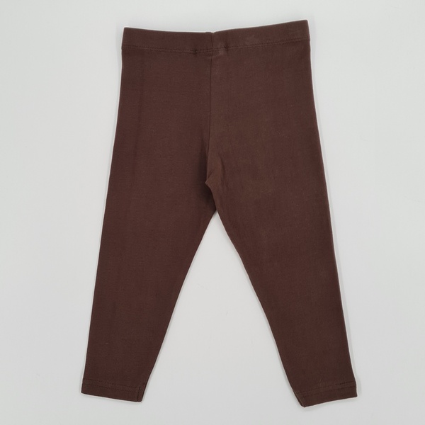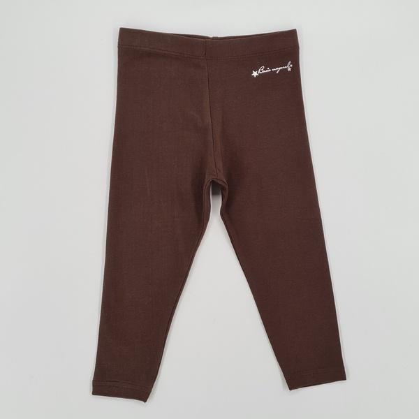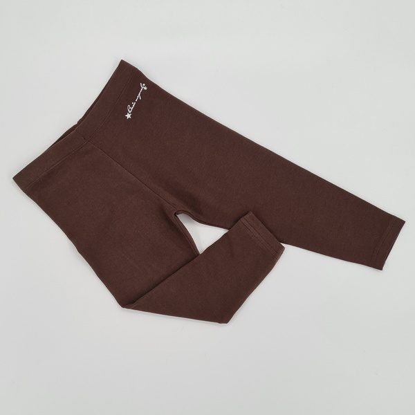 Leginsy brązowe z elastycznego, ciągliwego materiału, długa nogawka, guma w pasie, delikatna aplikacja- srebrny napis