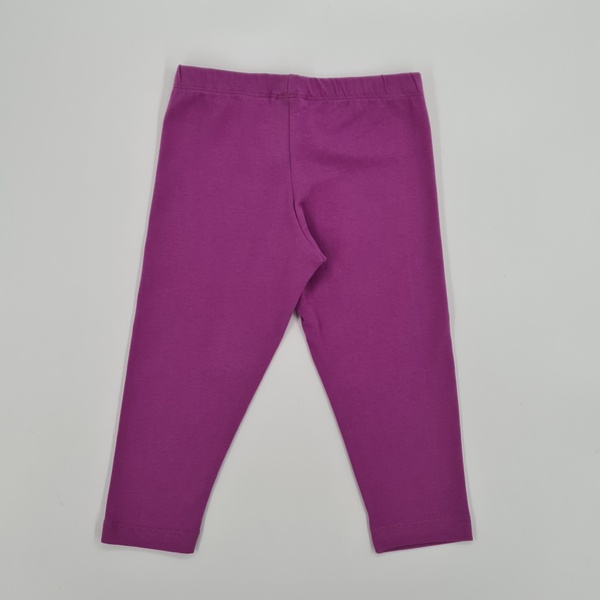 Leginsy fioletowe z elastycznego, rozciągliwego materiału, guma w pasie, delikatna aplikacja- srebrny napis