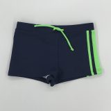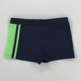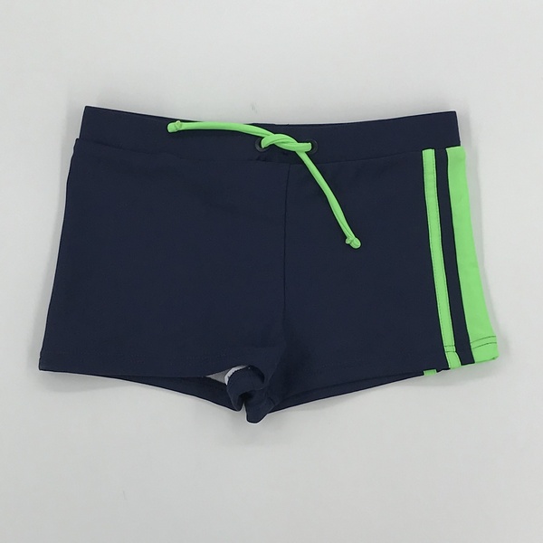 Kąpielówki w kolorze granatowym z zielonymi wykończeniami, wykonane z szybkoschnącego materiału