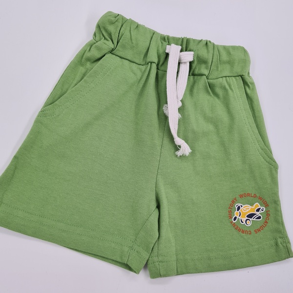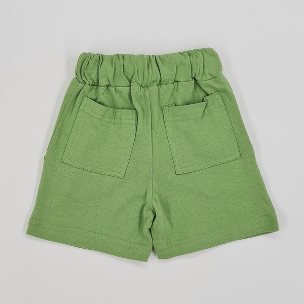 Krótkie spodenki zielone,w pasie szeroka guma i dodatkowo sznurek, dwie kieszenie z przodu, dwie z tyłu, bardzo lekkie i przewiewne