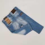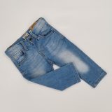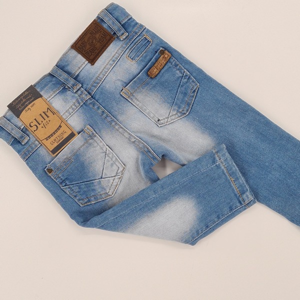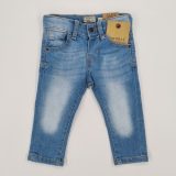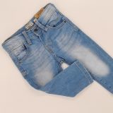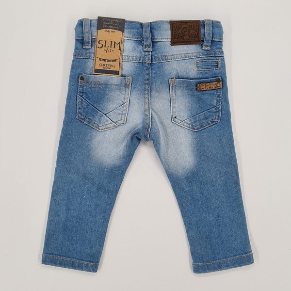 Spodnie z elastycznego jeansu, długa nogawka ,z wewnętrzną regulacją w pasie , zapinane na napę, kolor jeans, trzy kieszenie z przodu i dwie z tyłu