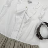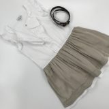 Sukienka biała,z obniżonym stanem w beżowym kolorze(satyna) , średniej długości, zapinana na guziki, z eleganckim żabotem