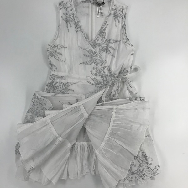 Sukienka z dekoltem w szpic, zapinana z tyłu na zamek, średniej długości (za kolano),warstwowa, przekładana
