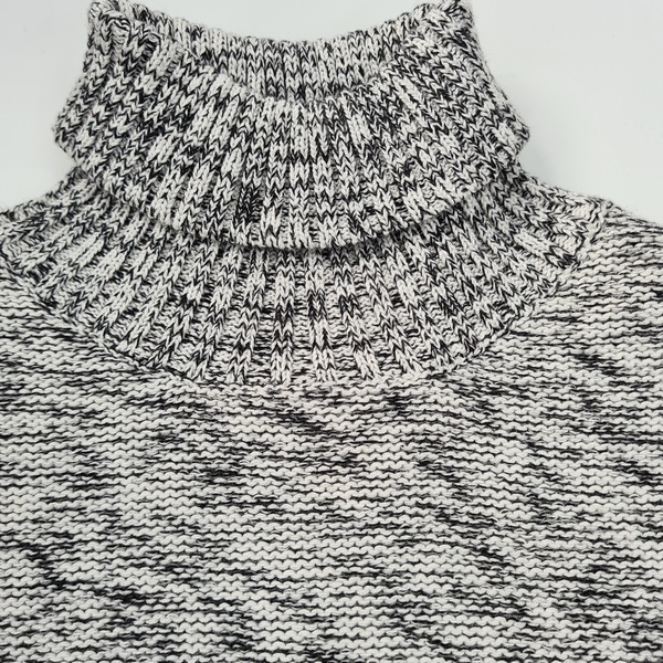 Sweter z bawełny, golf, kolor biały i czarny melanż, przy szyi, rękawy oraz dół wykończone ściągaczem