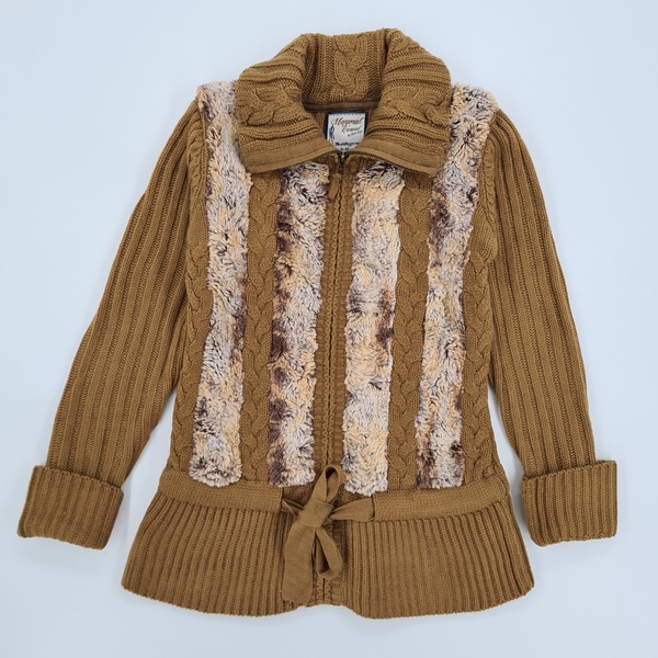 Sweter długi 100% akryl, długi rękaw, zapinany z przodu na zamek,pasek na wysokości bioder