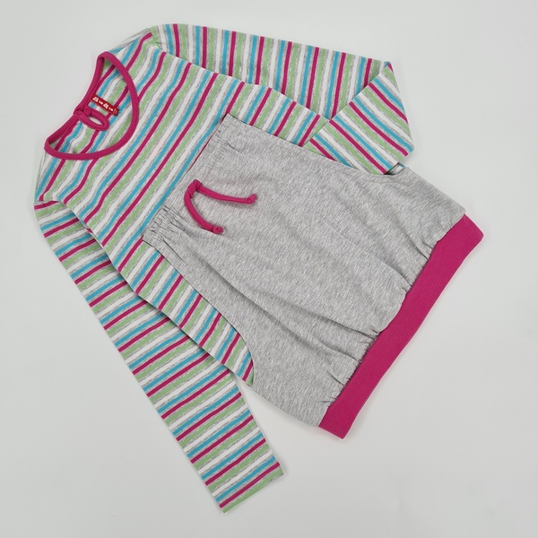 Tunika w paski z okrągłym dekoltem, zapinana z tyłu na guzik, z długim rękawem, z przodu kieszeń typu kangurek